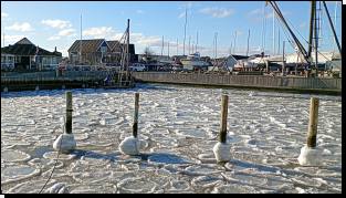 C'est vrai que maintenant en plein hiver l'avant-port de la marina est un peu plus exposé au vent et à la mer, que ce dernier y pousse allègrement quand il souffle de l'est; mais au moins cela évite-t-il à "Lista" de se trouver pris dans la glace encore plus épaisse du fond du port plus confortable.